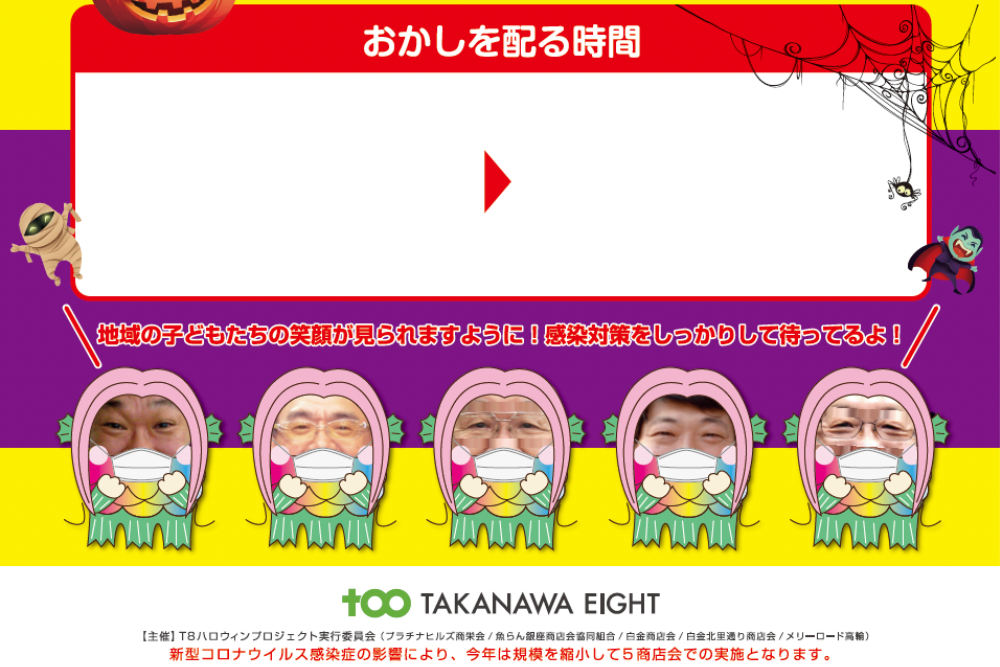 毎年10/31に白金高輪エリアの複数の商店街合同で行われるハロウィンイベントです。お菓子を配布するお店が掲載された地図を頼りに商店街のお店を巡って「トリックオアトリート!」の合言葉を言うとお菓子がもらえます。お菓子の内容や配布する時間はお店によってさまざま。街は仮装した子どもたちの姿で溢れかえります。