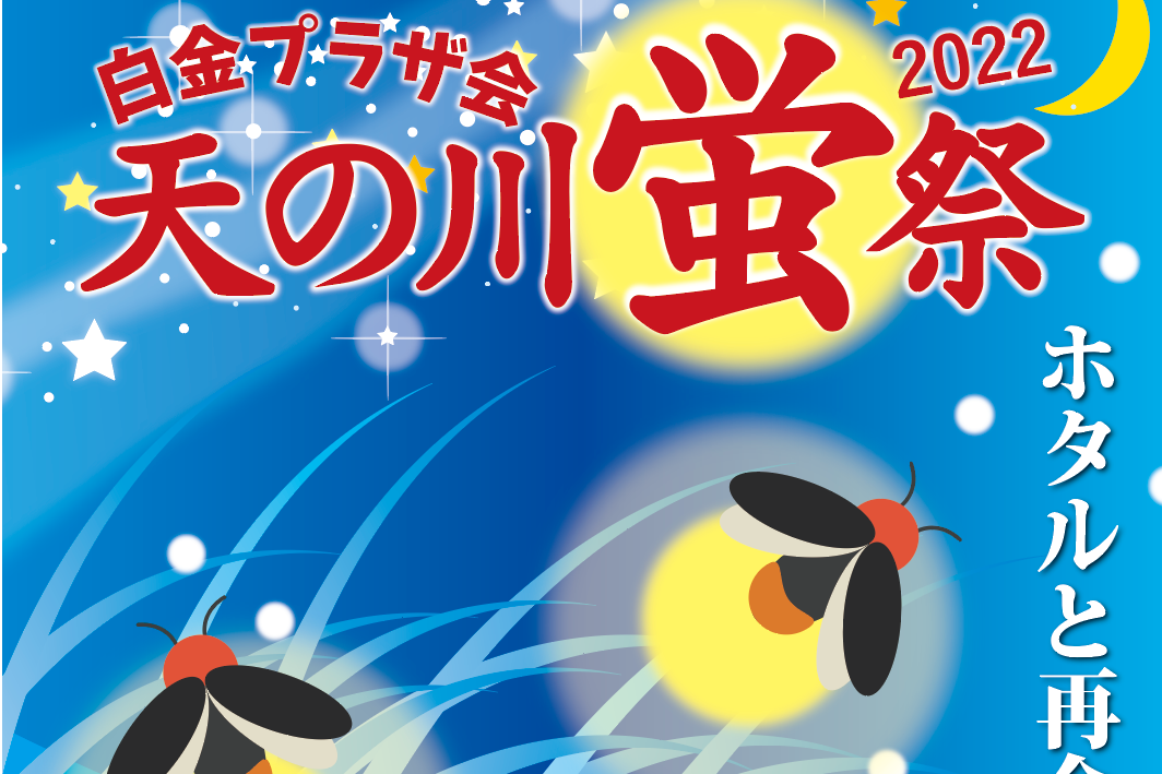 白金プラザ会の友好都市である山形県庄内町からやって来る本物のボタルを見ることができるホタル観賞イベントです。ホタルは「ホタル小僧」こと工藤時雄さんが育てたゲンジホタルです。他にもこども縁日、こどもたちが作るキッズ天の川アート、スタンプラリー、ライブステージ、屋台村&物産展など盛りだくさんの内容です。