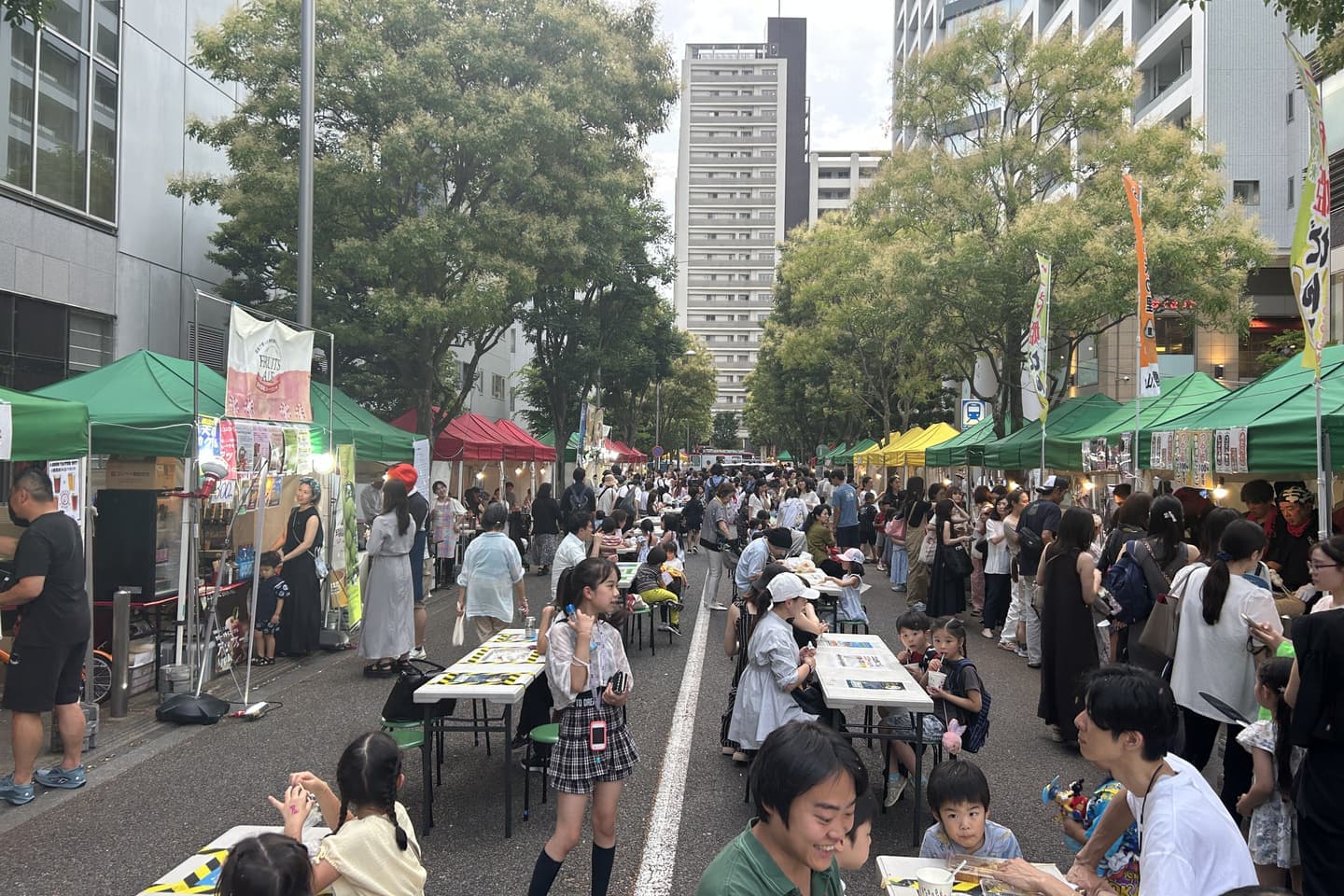 前年に続いての土日開催。そしてセンターストリート車道をタワー棟の駐車場出入口を除き、初めて全面封鎖して臨みました。そしてこちらも初めての試みとなったキッズ天の川アート。近隣施設の子どもたちに空きペットボトルに自由に絵を描いてもらい、それら約1,000 個のペットボトルで作った天の川はとても美しい作品となりました。あいにくの雨天でしたが、なが〜い天の川や屋台村&物産展にもたくさんの方々にご来場いただき、大盛況のうちに終了しました。