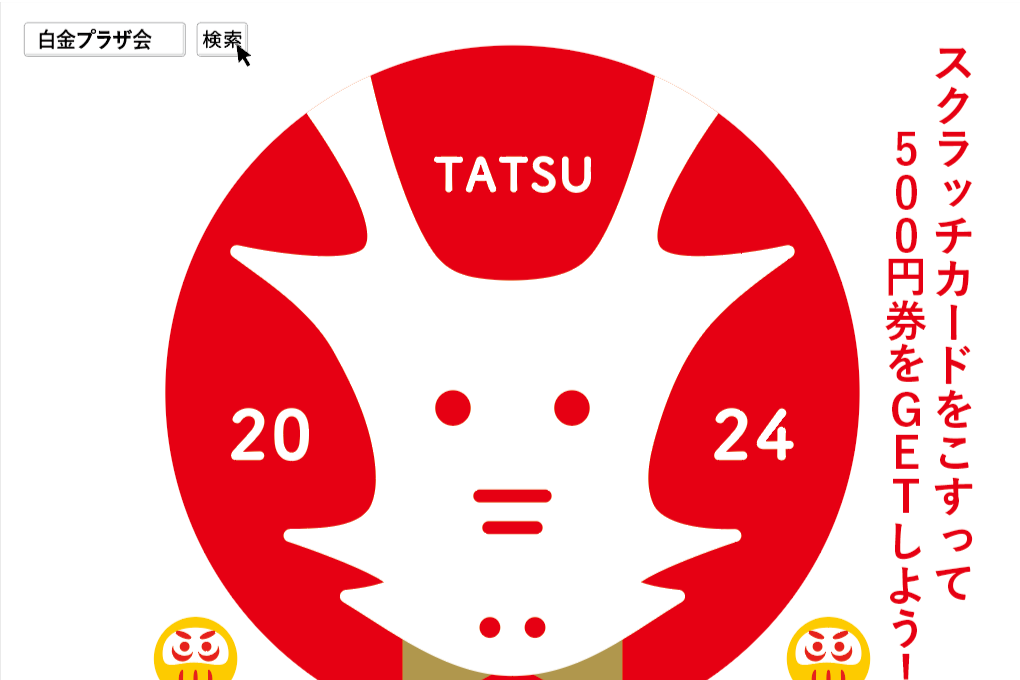 白金プラザ会の対象店舗のご利用でスクラッチカードを進呈。当たりが出たら、白金プラザ会の対象店舗で使える金券などがもらえます。