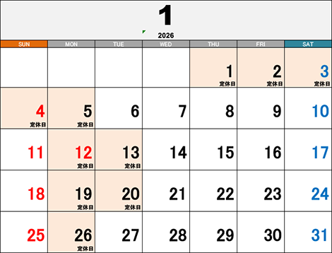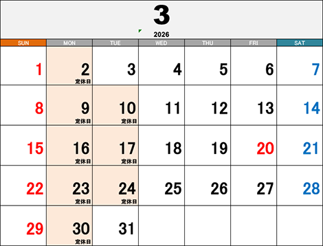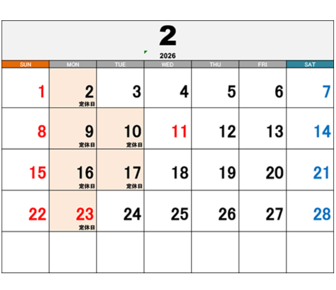 | 定休日 | 毎週月曜日、第2、3火曜日 |