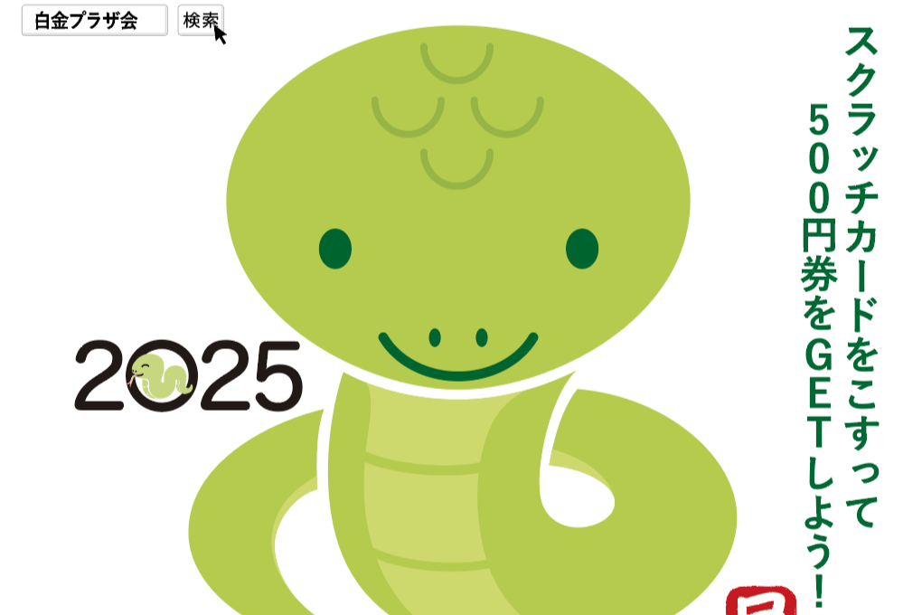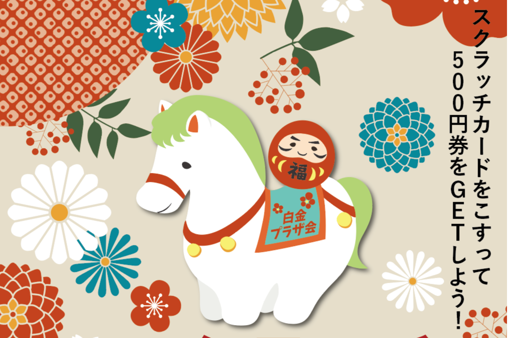 白金プラザ会の対象店舗のご利用でスクラッチカードを進呈。当たりが出たら、白金プラザ会の対象店舗で使える金券などがもらえます。